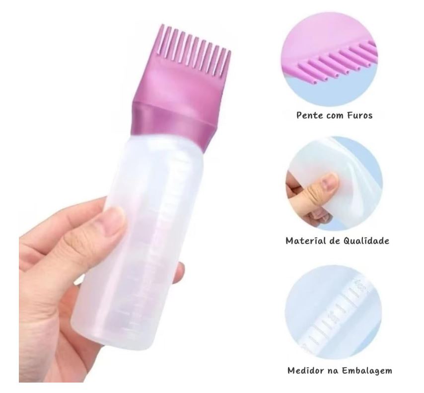 Aplicação prática: o pente aplicador facilita o uso de óleos, cremes ou tinturas diretamente nos fios.